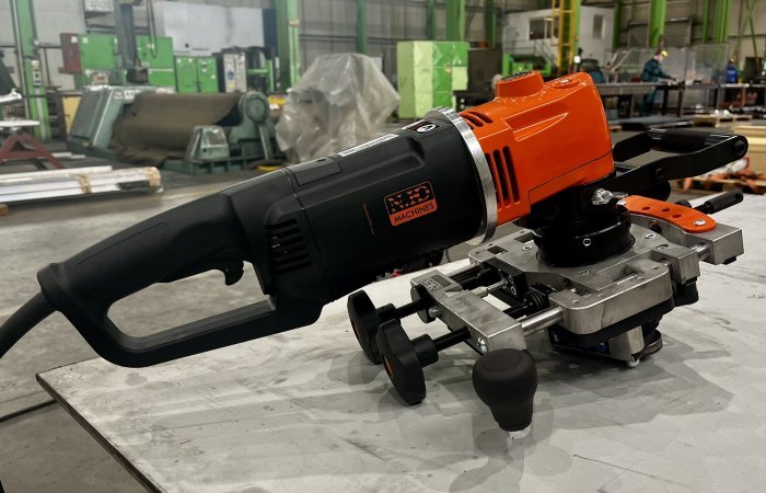 The B15 INOX set is a lightweight, handheld, and portable bevelling system, designed for preparing welding surfaces on stainless steel sheets, profiles, and tubes. It stands out for its reliability, versatility, user-friendly operation, and strong performance.