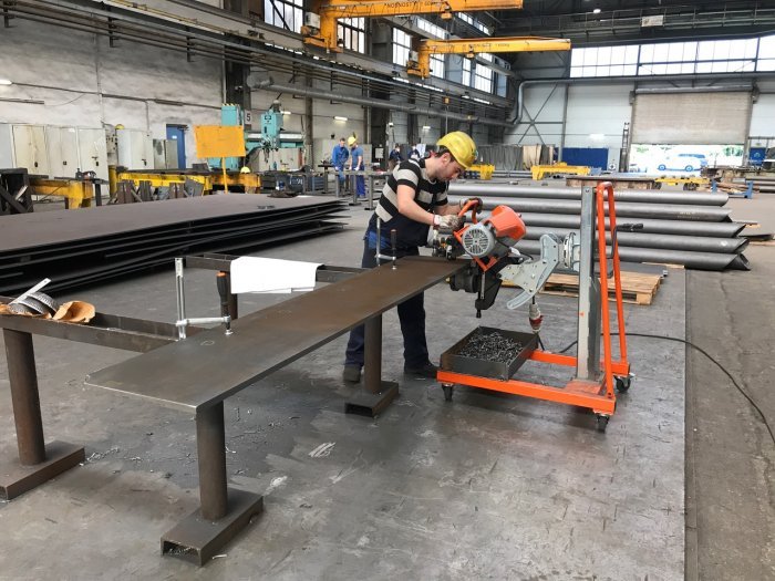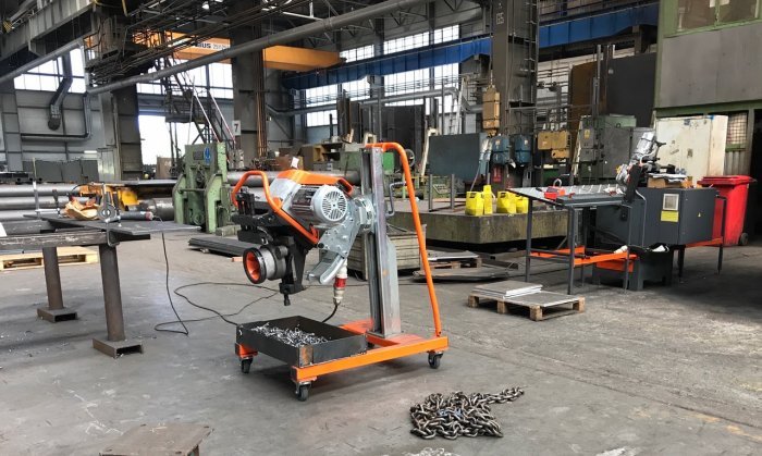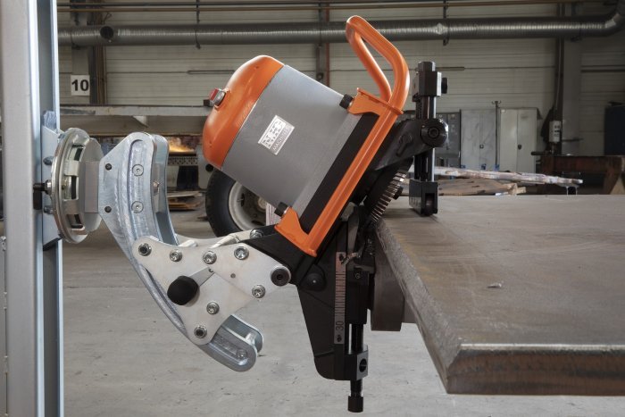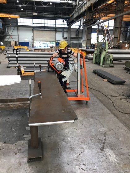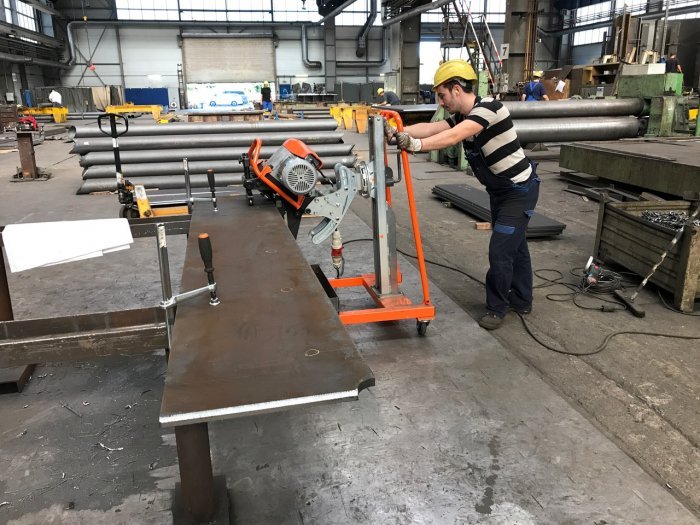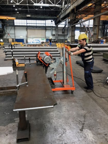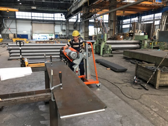At the same time it can be used as a mobile bevelling system when the machine moves along the machined steel sheet at a rare of almost two meters per minute.