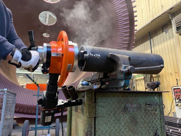 The Stinger 300 can be used with three or two tool’s holders only depending on the required bevelling job.